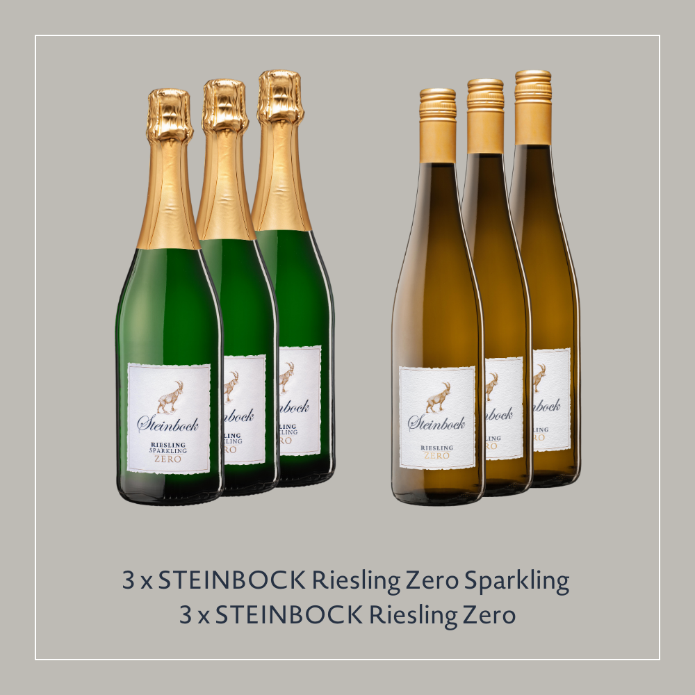 3 x Steinbock Riesling Zero Sparkling & 3 x Steinbock Riesling Zero.